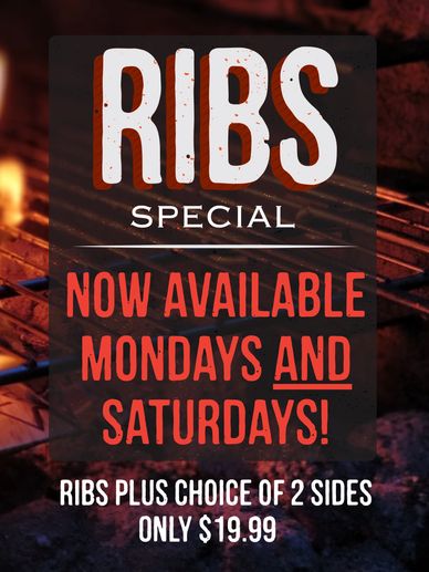 Our popular ribs will be available on Saturdays in addition to Mondays starting in October. We slow roast the ribs so they are fall-off-the-bone tender, coat them in delicious BBQ sauce and serve them up with your choice of 2 sides.